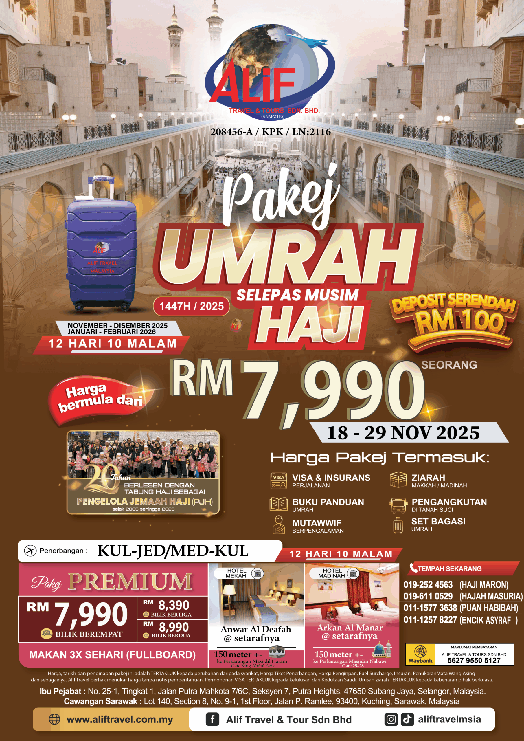 - Peluang Menikmati Umrah dengan tatacara SOP kesihatan & keselamatan yang sangat teliti.